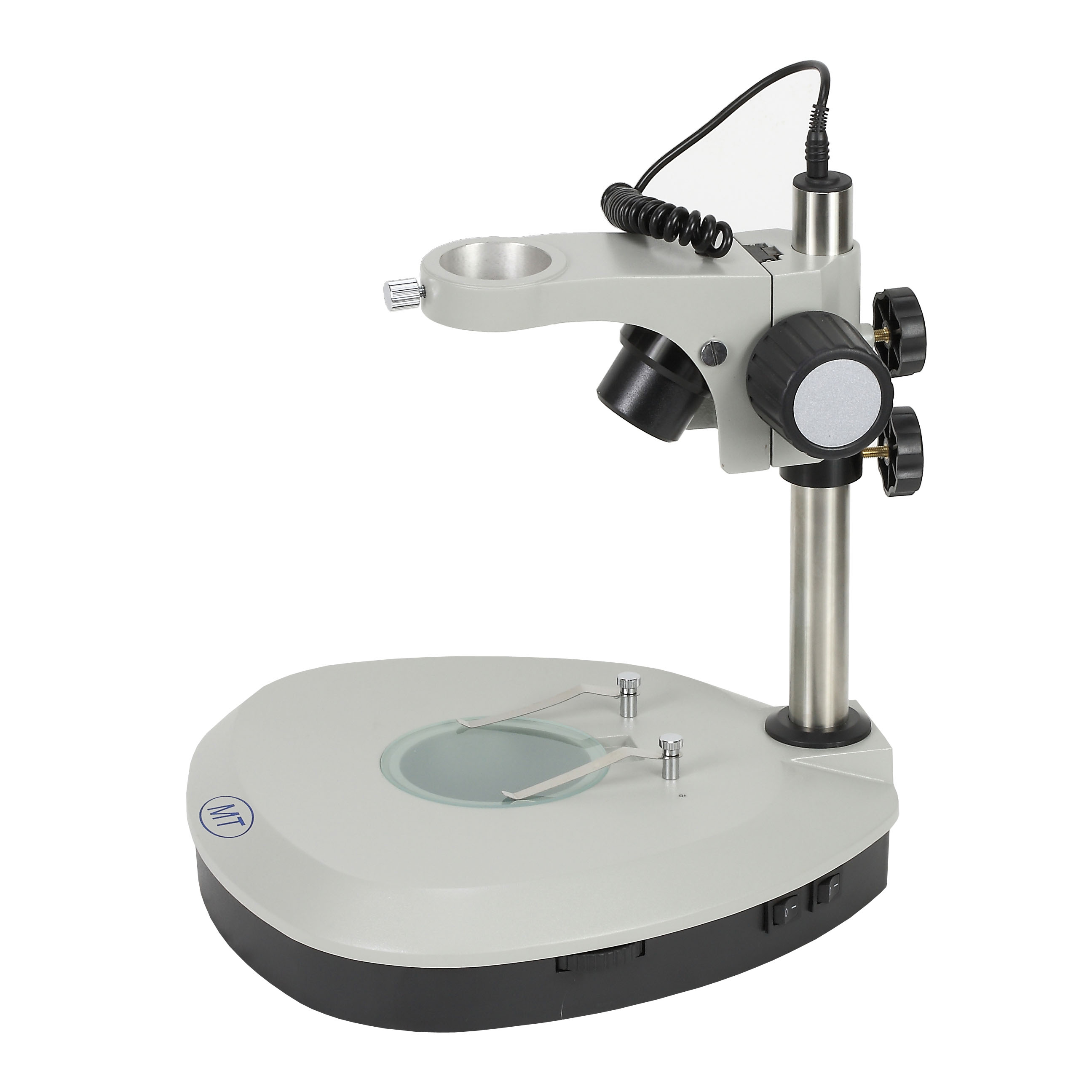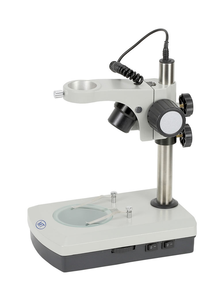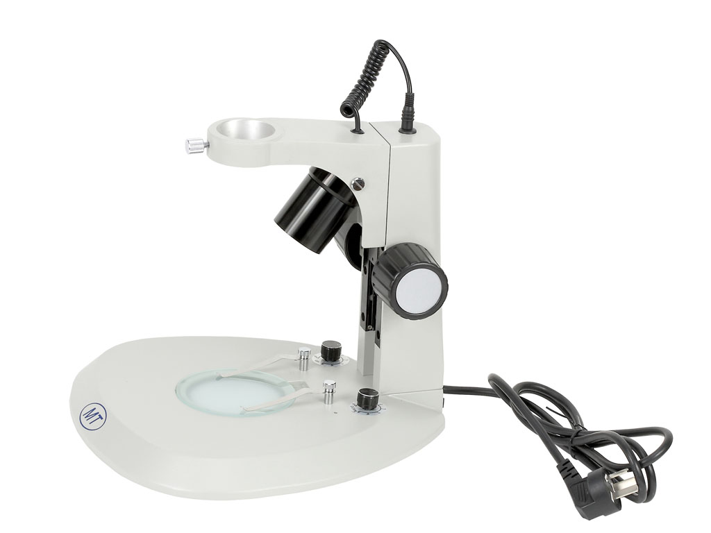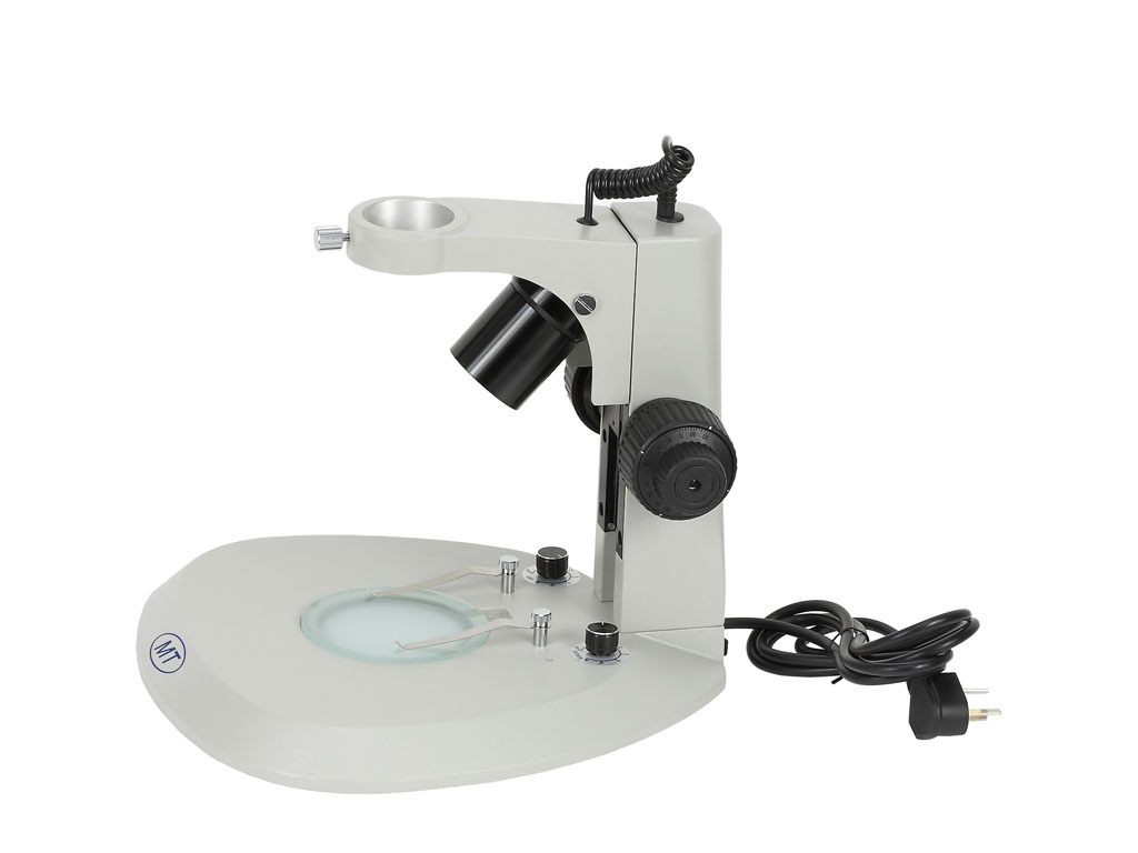 型號名稱:SD4-D底座組 說明: ● 鏡架內置可調角度、可調亮度6V/10W帶反光杯鹵素上光入射照明光源 ● 底座內置110V或220V/5W熒光燈下光透射照明 ● 可單獨使用或者同時使用上光源或下光源照明,分離式各種插頭電源線 ● 鏡體安裝孔直徑Φ45mm ● 方立柱調焦范圍100mm ● 中心工作臺直徑Φ95mm