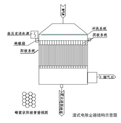 濕電有幾種結(jié)構(gòu)形式,一種是使用耐腐蝕導(dǎo)電材料(可以為導(dǎo)電性能優(yōu)良的的非金屬材料或具有耐腐蝕特性的金屬材料)做集塵極,一種是用通過噴水或溢流水形成導(dǎo)電水膜不導(dǎo)電的非金屬材料做集塵極。 濕式電除塵器還可分為橫流式(臥式)和豎流式(立式),橫流式多為板式結(jié)構(gòu),氣體流向?yàn)樗椒较蜻M(jìn)出,結(jié)構(gòu)類似干式電除塵器;豎流式多為管式機(jī)構(gòu),氣體流向?yàn)榇怪狈较蜻M(jìn)出。一般來講,同等通氣截面積情況下豎流式濕式電除塵器效率為橫流式的2倍。