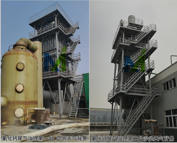 同一客戶的兩臺氯化鈣造粒生產線濕電除霧器治理效果