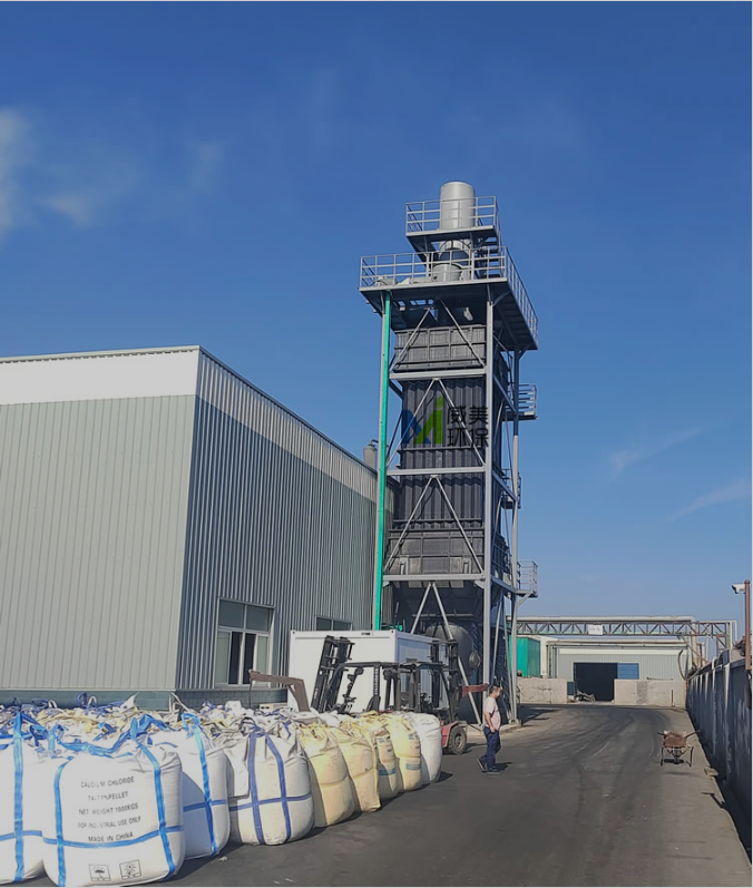 同廠區內兩臺濕電除霧器 右側為前段時間調試的氯化鈣尾氣治理除霧設備